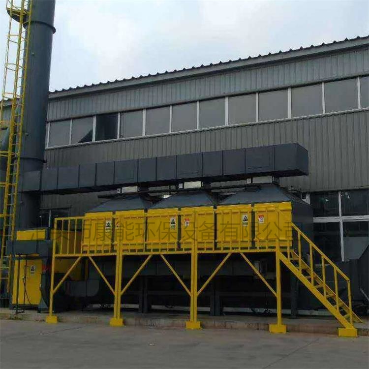 2、箱子在線型催化燃燒設(shè)備工作時,其中2個吸附箱處于吸附狀態(tài),1個吸附箱處于備用狀態(tài)。當(dāng)需要進(jìn)行脫附時,備用的箱體進(jìn)入吸附狀態(tài),替換掉一個需要脫附的箱體,單獨進(jìn)行脫附。該箱體脫附完成后用以替換另一個需要脫附的箱體,從而實現(xiàn)活性炭箱體一直有2個處在吸附狀態(tài),保持對廢氣的24小時在線處理。